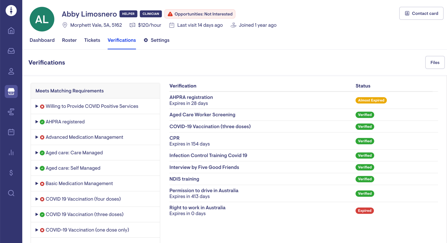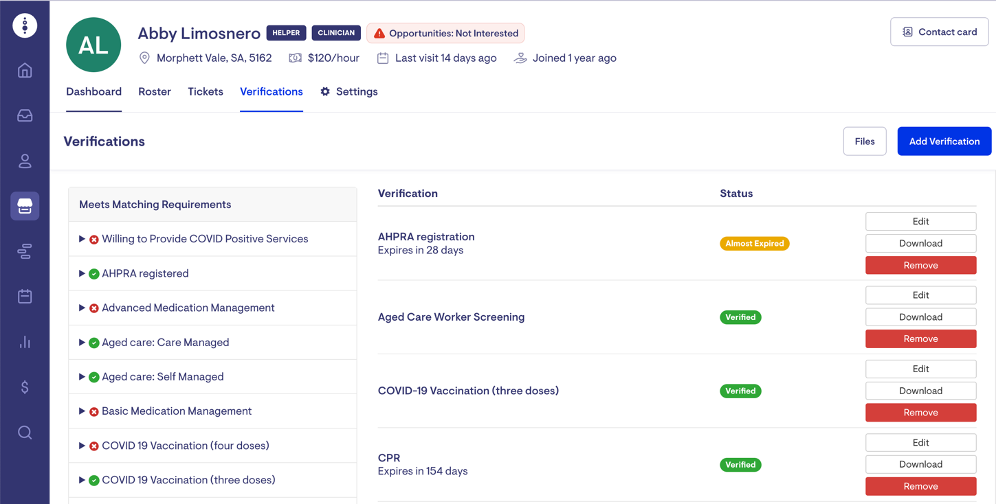 A new Access Role named 'Verifications' has been introduced to better manage admin staff members' ability to upload, download, and approve Helper verification documents.