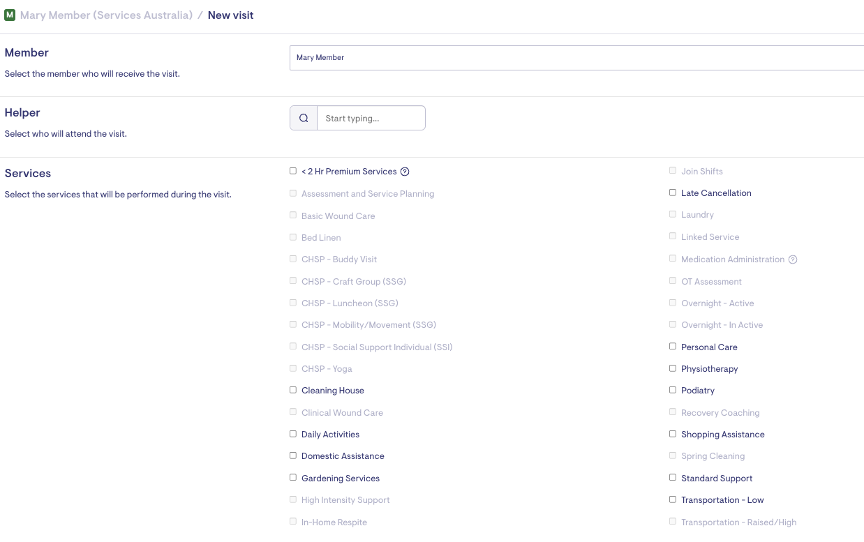 We've introduced the ability to restrict the selection of services when scheduling visits for members, making it easier to manage rosters efficiently without second-guessing your choices.
