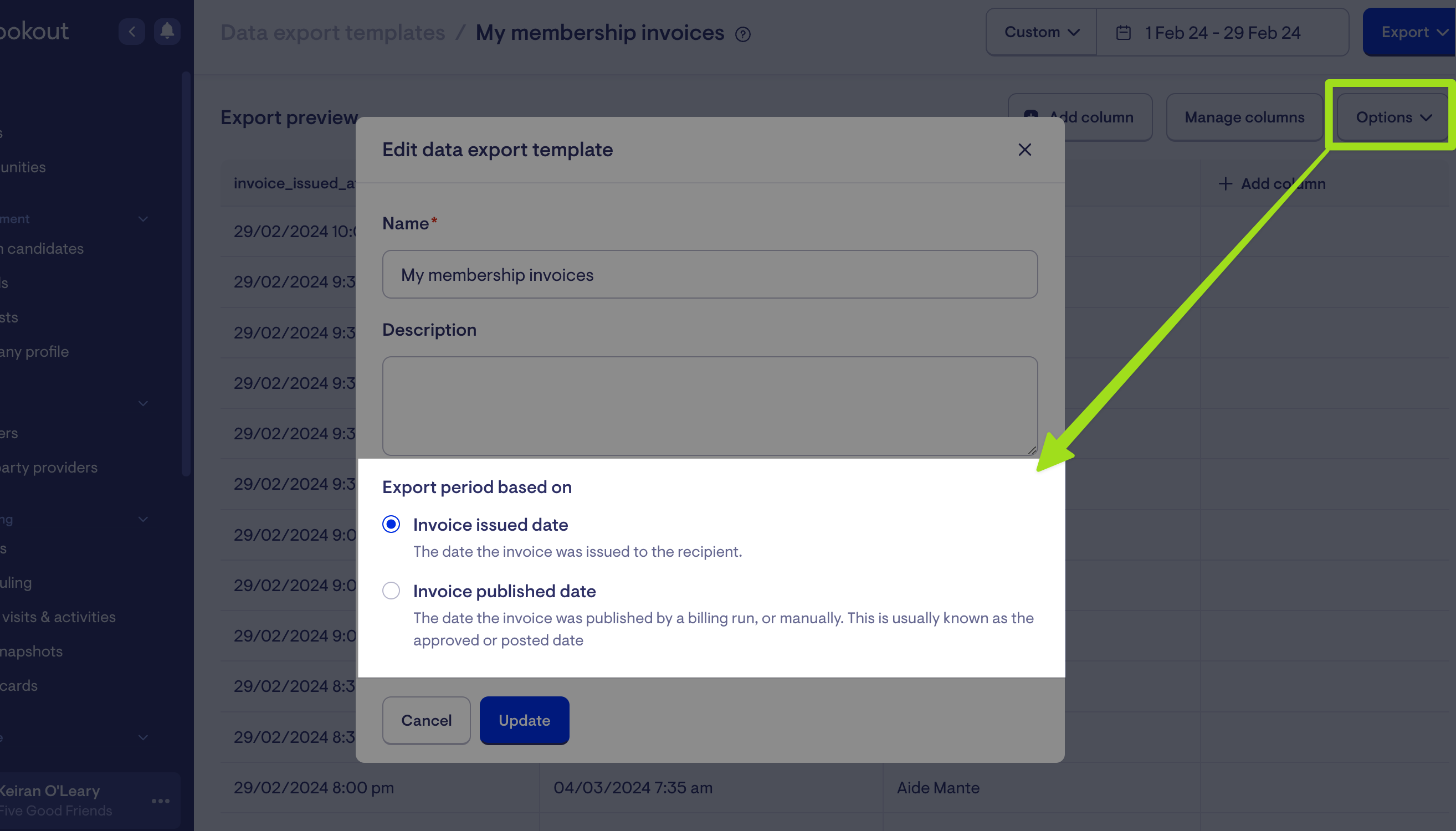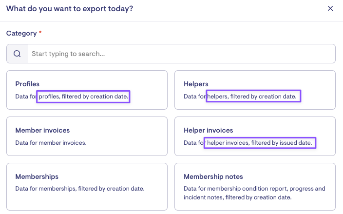 We are enhancing our date criteria functionality by allowing users to select the key date that determines the exported window, starting with the 'Member invoices' category. Other data category export periods remain fixed at this stage.