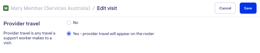 provider_travel_time_rostered—the rostered estimated travel time in seconds. Visits with the Provider travel setting set to 'No' will appear blank on the report.