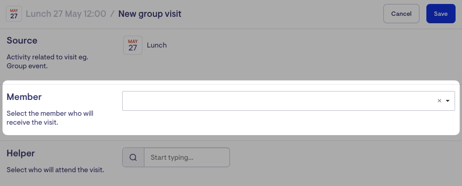 If you are adding a helper with an employee engagement type, leave the Member section empty to avoid double-charging the member.